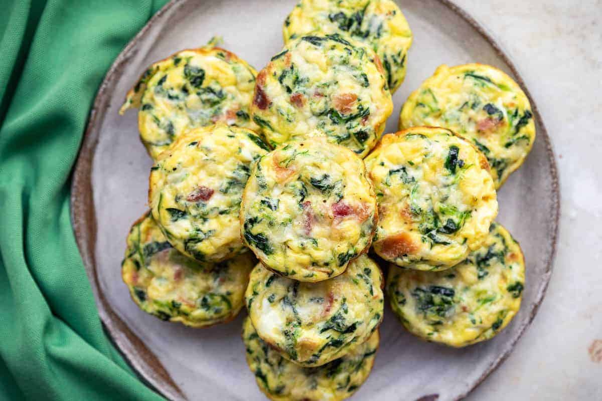 Packed with protein, these cheesy egg cups feature spinach and crispy bacon. Low-carb, freezer-friendly, and ideal for breakfast or brunch on the go.