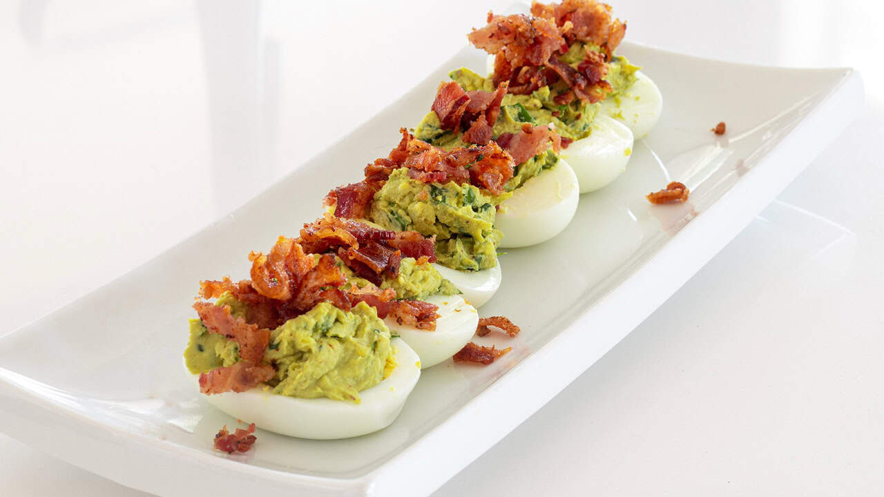 Swap out mayonnaise for mashed avocado in your deviled eggs for a green-hued, heart-healthy update. The avocado adds creaminess and a slightly nutty flavor.