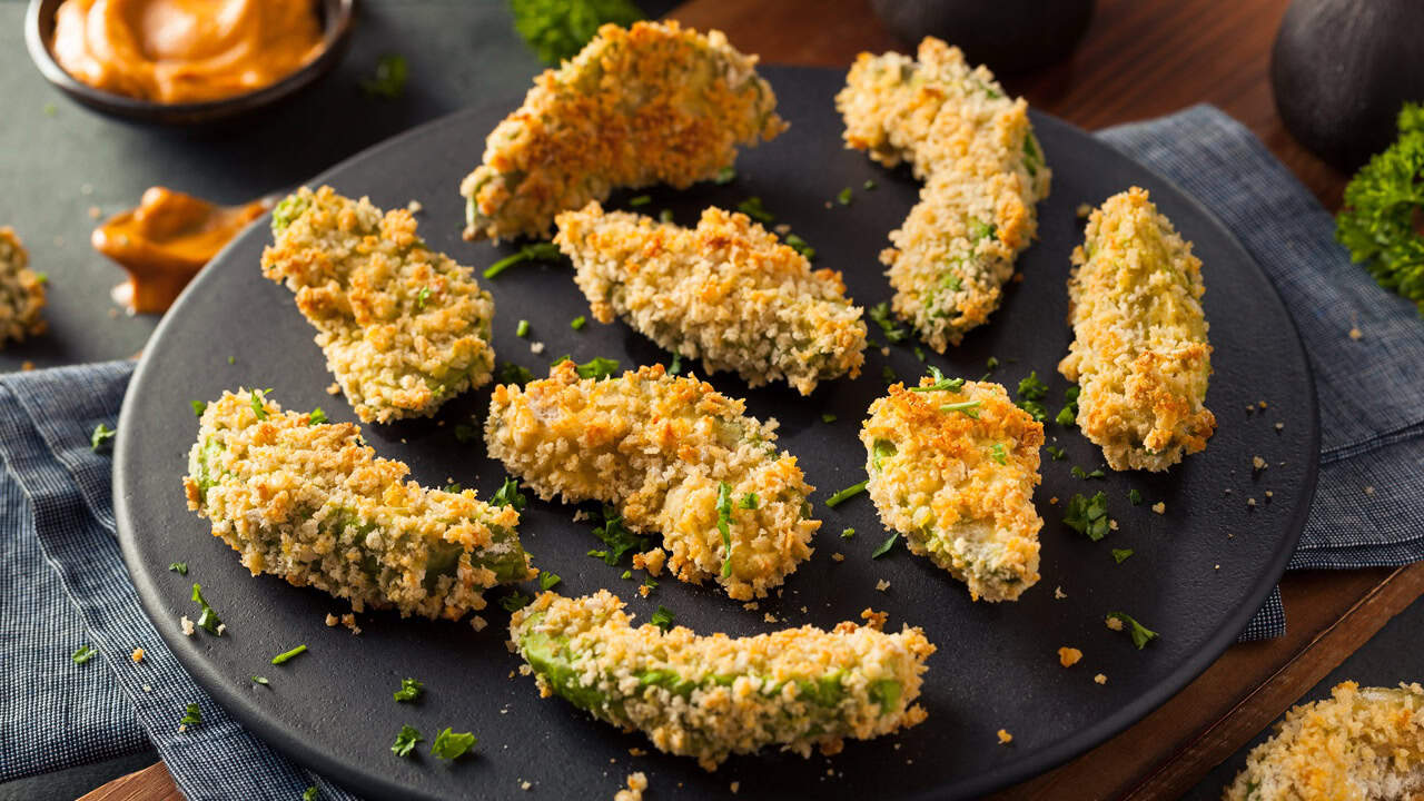 Slice avocados into thick wedges, coat them in breadcrumbs, and bake or air-fry until crispy. These fries are crunchy on the outside and buttery on the inside.