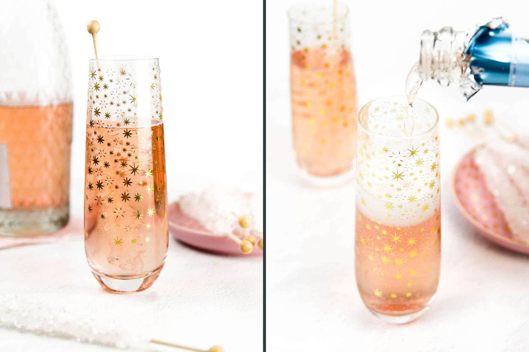 The Pink Champagne Cocktail dazzles with sparkling rosé, vodka, and bitters, making it an enchanting drink for any celebration.