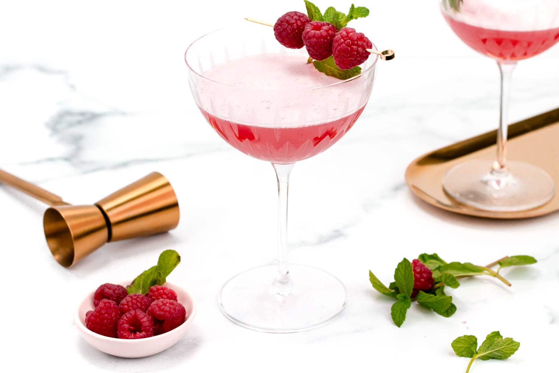 The Raspberry Martini is a sweet and tart delight, perfect for toasting your special someone.
