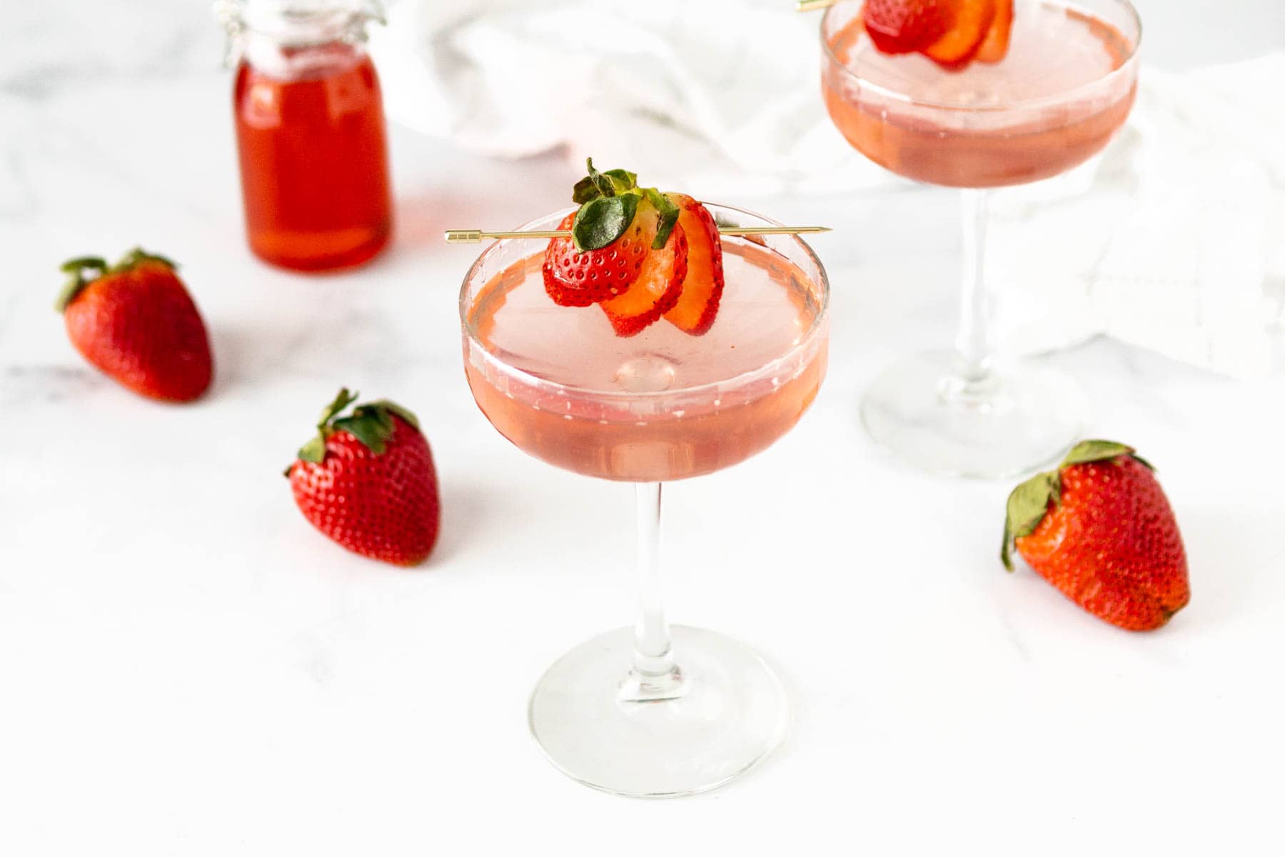 The Strawberry Martini is a sweet and simple cocktail that celebrates strawberry season, ideal for pairing with dessert or salty snacks.