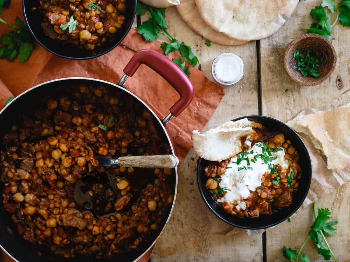 A fragrant Moroccan-inspired lamb and lentil stew with chickpeas, warming spices, and a touch of yogurt for a rich and satisfying dish.