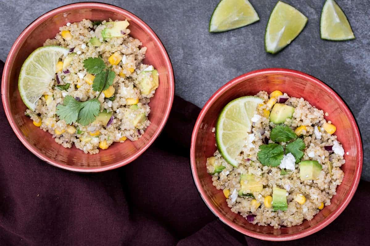 Quinoa Avocado Salad features fluffy quinoa, creamy avocado, fresh corn, and feta cheese, all brought together with a zesty cilantro-lime vinaigrette.