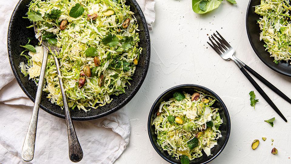 Get the Recipe: Shaved Brussels Sprout Slaw with Lemon Apple Cider Vinaigrette