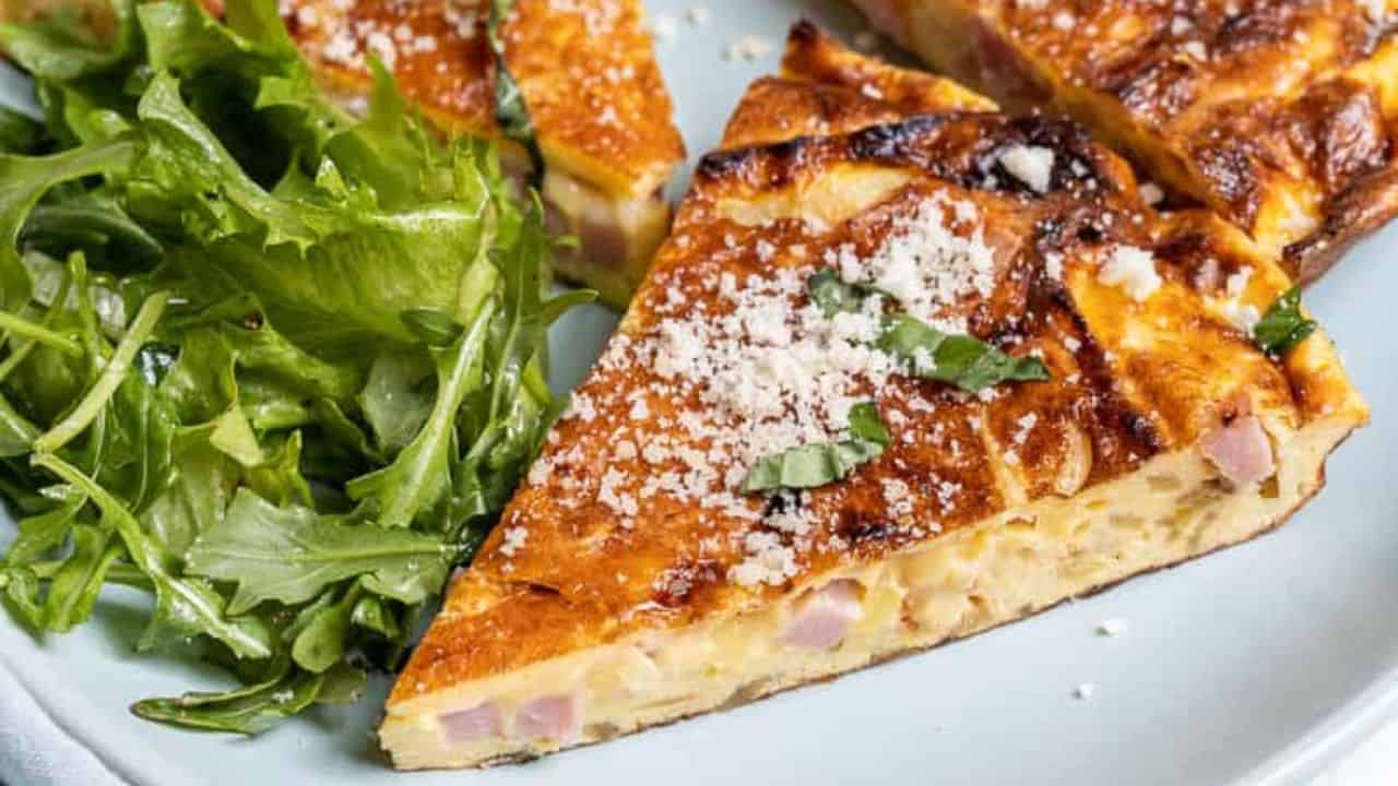 This delicious Ham and Cheese Frittata features caramelized onions and melty gruyère cheese. Perfect for breakfast, brunch, or lunch!