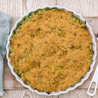This easy zucchini gratin has just 6 ingredients: shredded zucchini tossed with cheese and topped with buttery breadcrumbs. Comes together in minutes!